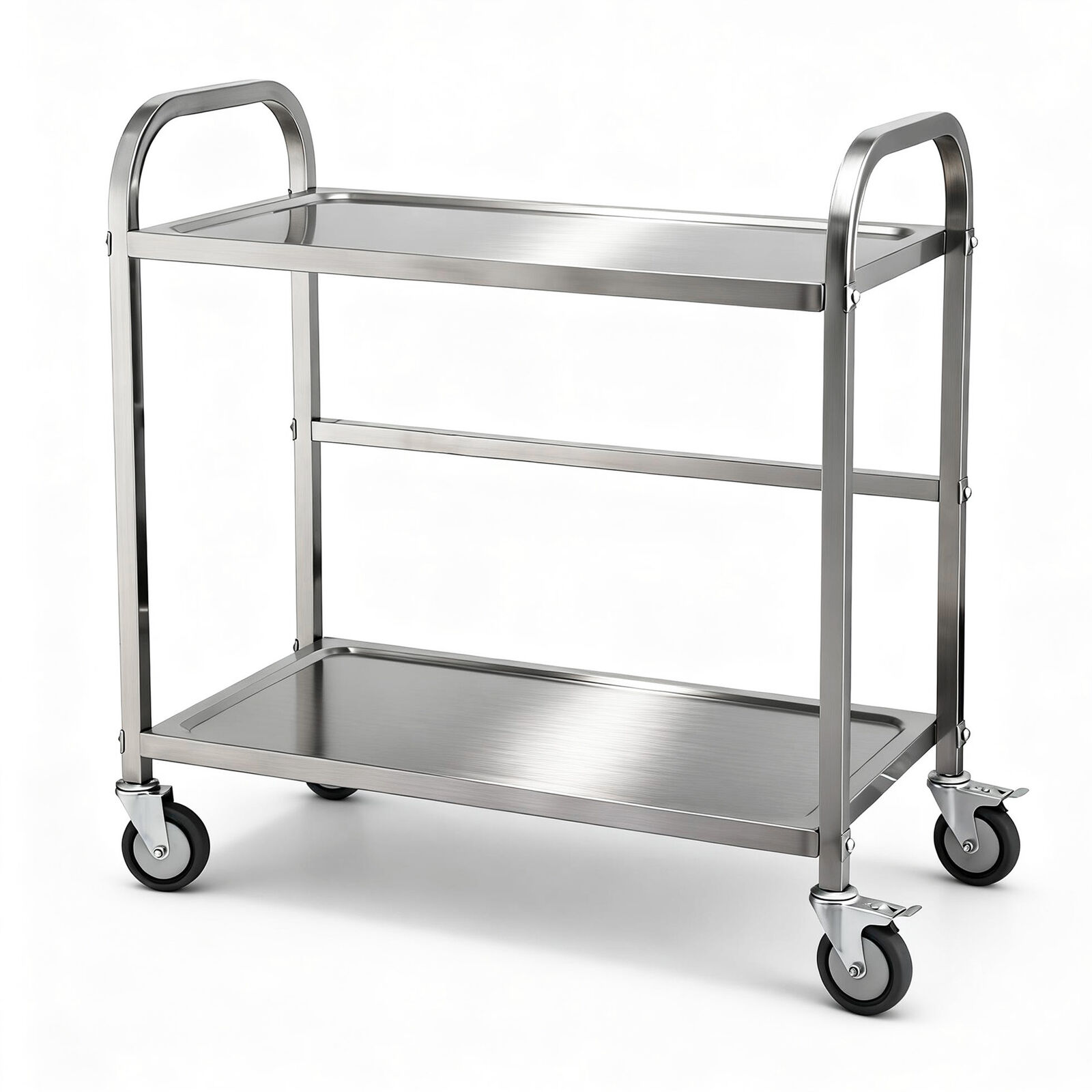 2-Tier Stainless Steel Kitchen Trolley with Wheels 84x56x98cm