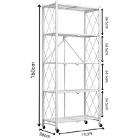 5-Tier Foldable Storage Shelf with Wheels for Kitchen, Garage, Pantry or Basement (White)