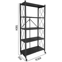 5-Tier Foldable Storage Shelf with Wheels for Kitchen, Garage, Pantry or Basement (Black)