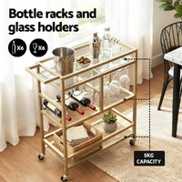 Bar Cart Drinks Trolley Serving Wine Rack Glass Holder 3 Hooks 72cm Gold