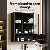 Bathroom Mirror Cabinet Mirrored Medicine Adjustable Shelf Wall Mounted 560mm Black