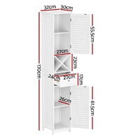 Bathroom Storage Cabinet 170cm Tall Slim Organiser Toilet Corner Adjustable Shelf Louver Door White