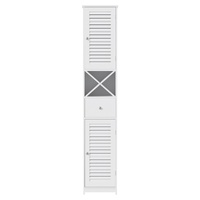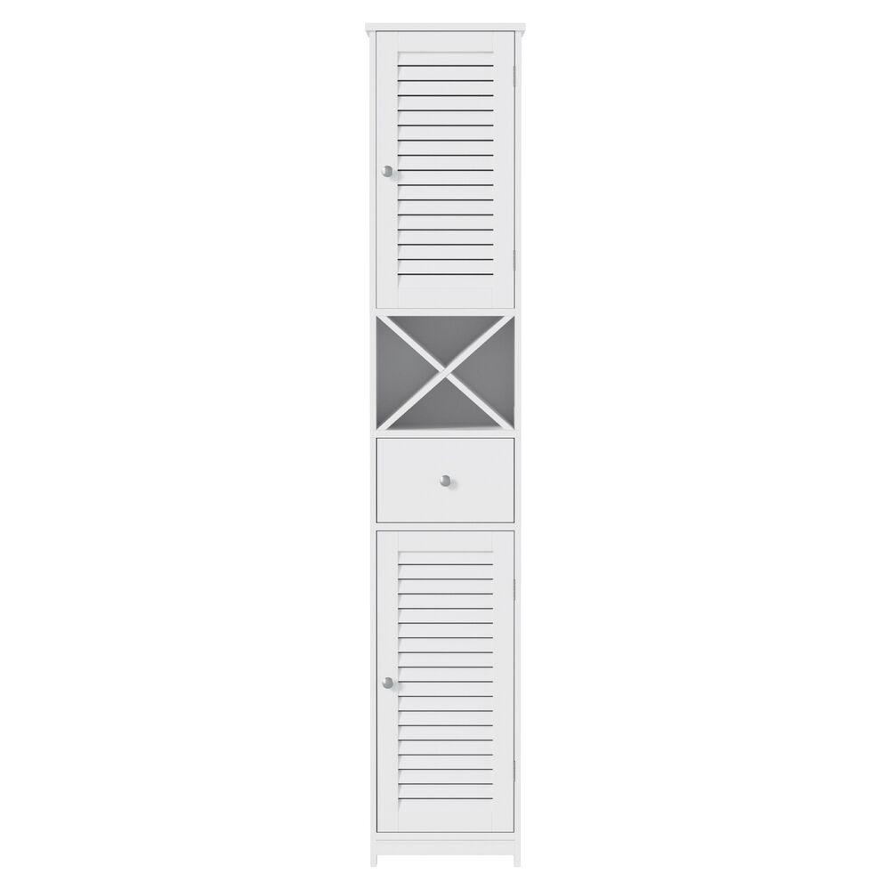 This versatile storage cabinet offers smart organisation beyond the bathroom. Its tall, slim profile fits perfectly in corners and tight spaces, while the adjustable shelves and unique X-shape shelf adapt to all your storage needs. In the bathroom, it neatly organises towels and toiletries; in the living area, it stores books and wine bottles; in the entryway, it keeps essentials tidy. The painting finish ensures durability in humid conditions, and the elegant louver doors add stylish design. This cabinet combines functionality with contemporary design for multiple living spaces. Features: Modern design with stripe panels15mm thick MDF with painting finish