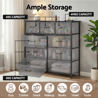 This modern 9-drawer chest of drawers is the perfect space-saving storage cabinet for your bedroom, hallway, or living area. It cleverly organises your space with six large drawers for clothes and three smaller ones for socks, accessories, or kids' toys. Built to last in any Aussie home, it features a sturdy metal frame and a strong MDF top (holds 40kg), with four adjustable feet for uneven floors and a safety anti-tip kit included for families.